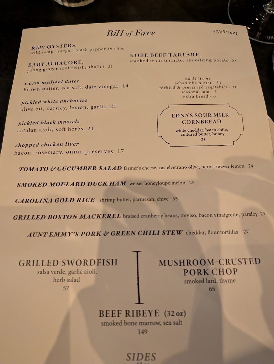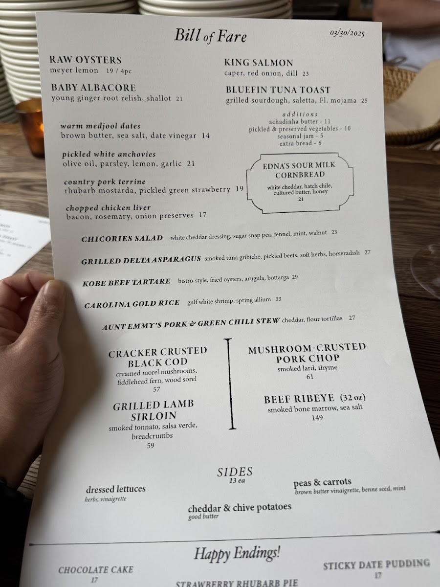 - Irresistible sides like Warm Medjool Dates and Pickled Mussels elevate each meal.